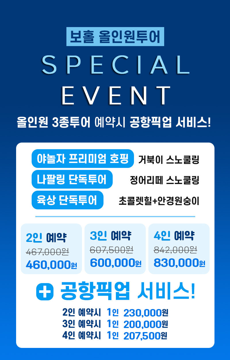 보홀 3종 필수투어 예약시 공항픽업 서비스!