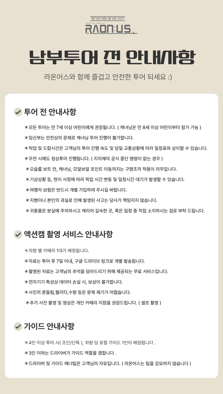 결제 전 카카오톡 채널 하이트래블 친구추가 후 담당자에게 문의주셔야 예약진행으로 확정처리되니 연락 바랍니다.