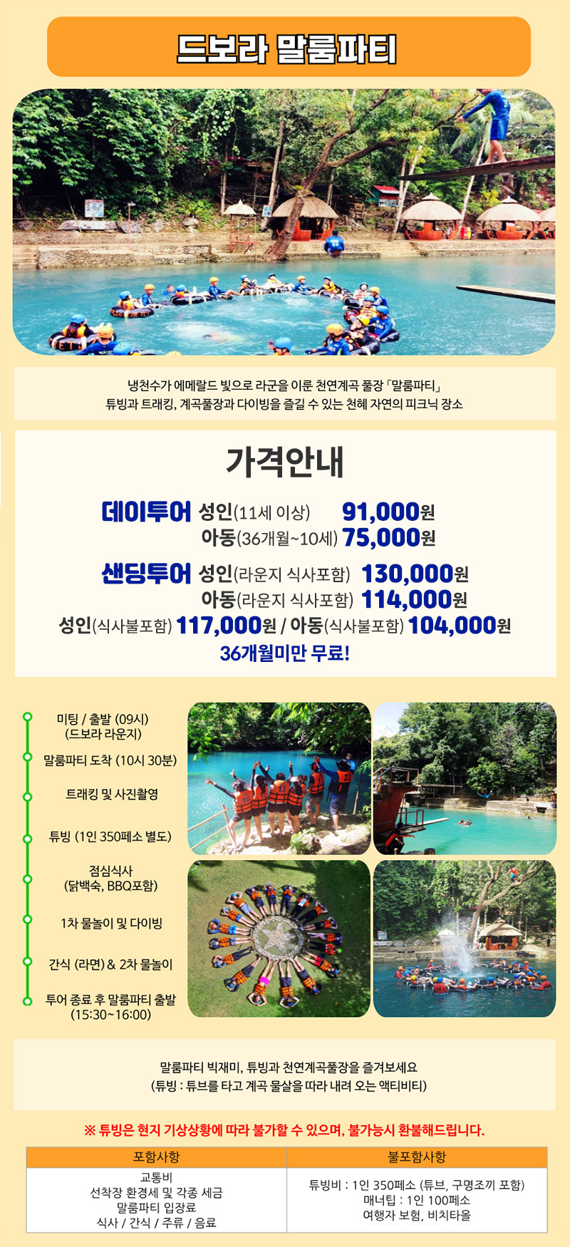 - 튜빙비 1인 350페소(튜브트래킹,튜빙장비포함)