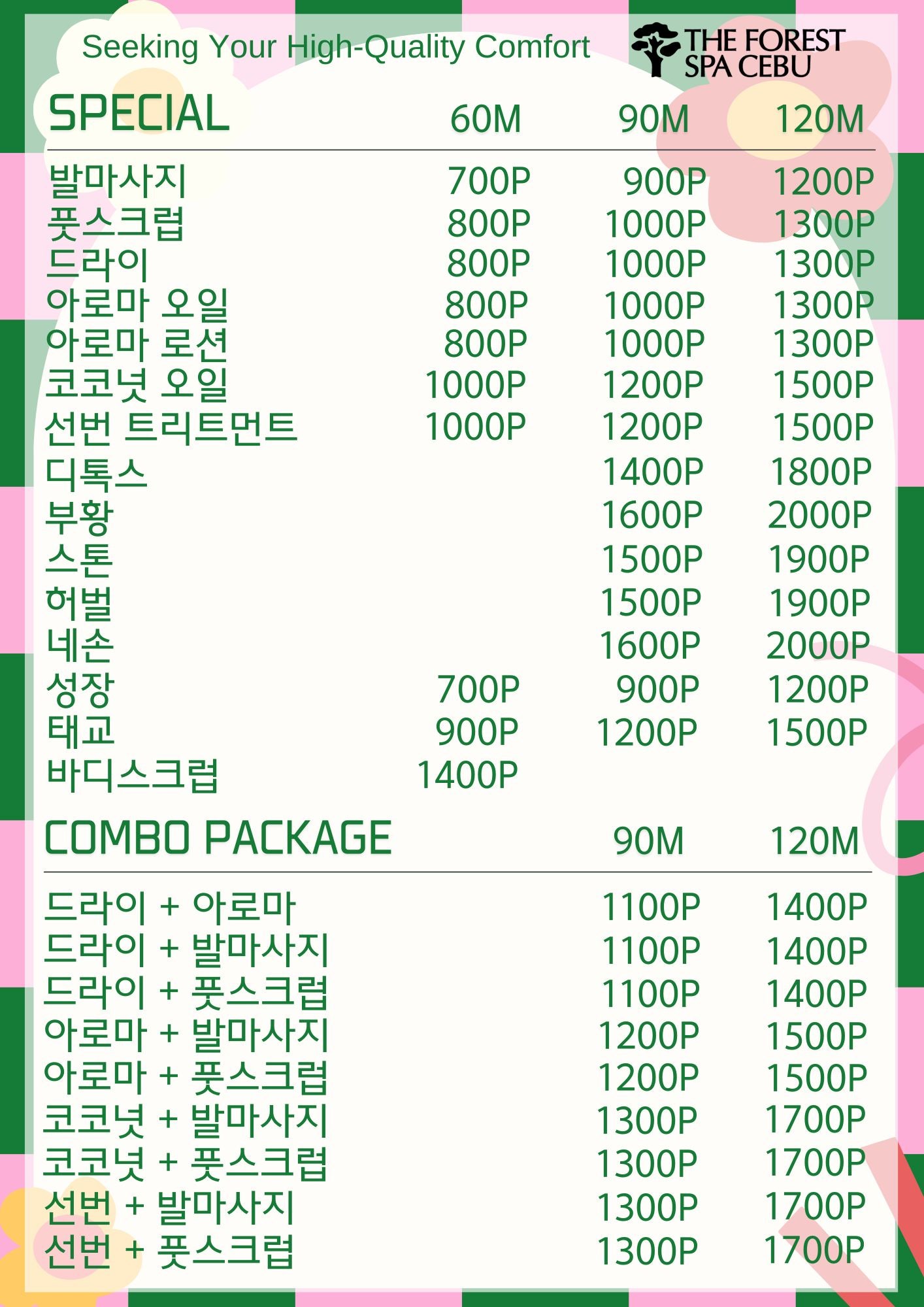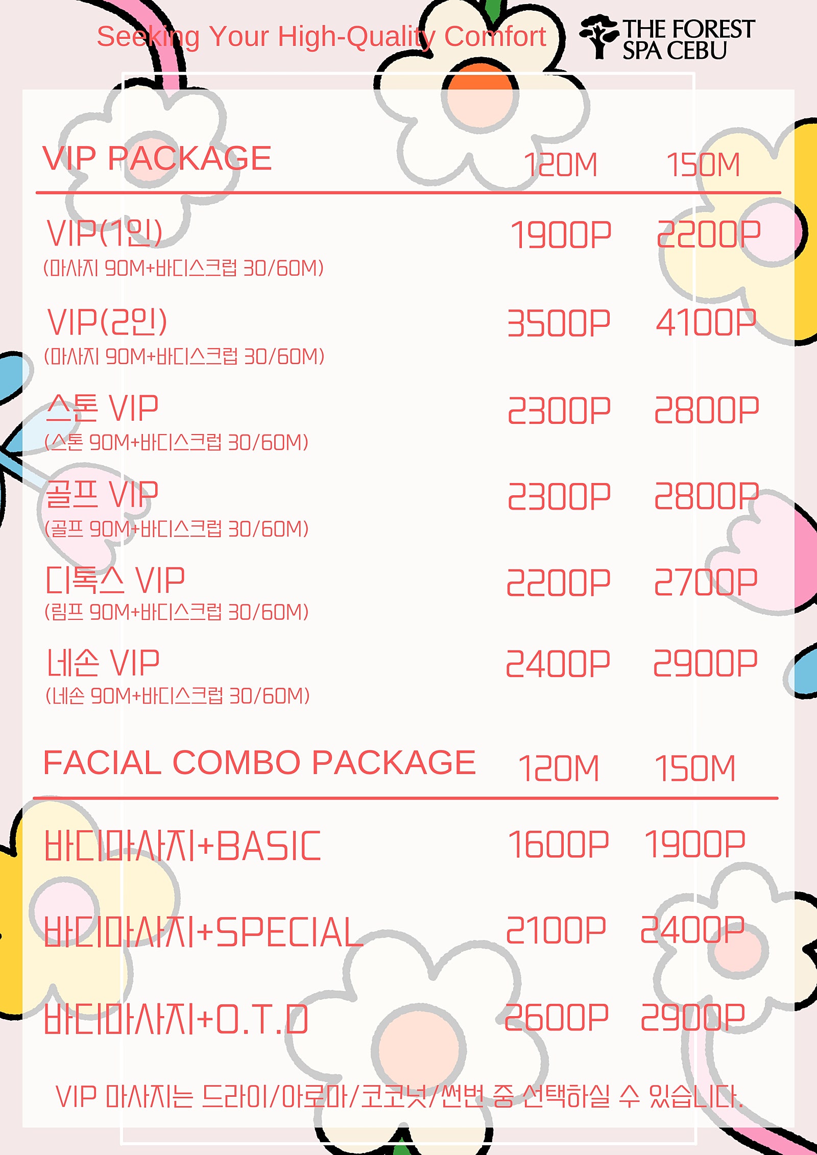 vip 1시간 마사지(드라이, 아로마, 코코넛, 썬번 중 선택)+1시간 바디스크럽 + 샤워