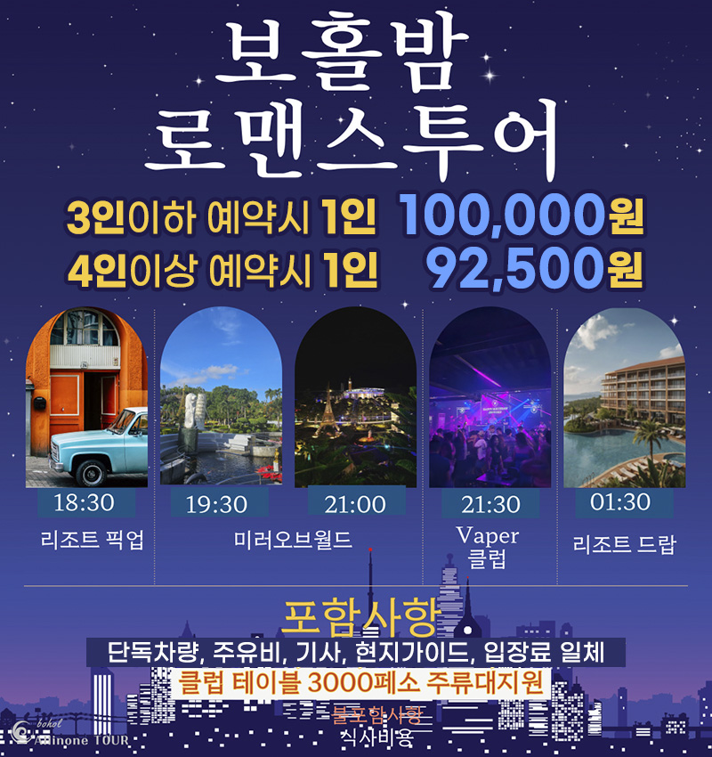보홀 밤 로맨스 투어로 지금 떠나보세요!