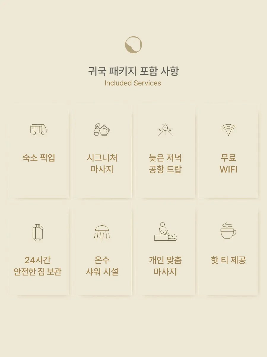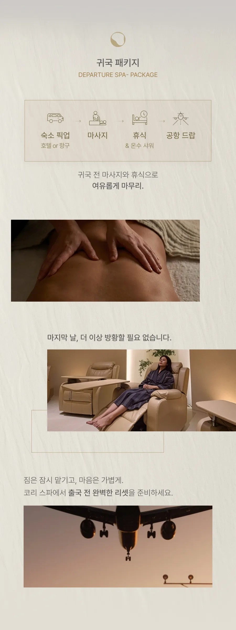 = 귀국팩은 마사지 후, **넓고 쾌적한 로비 라운지**에서 휴식하실 수 있도록 안내해 드리고 있습니다.