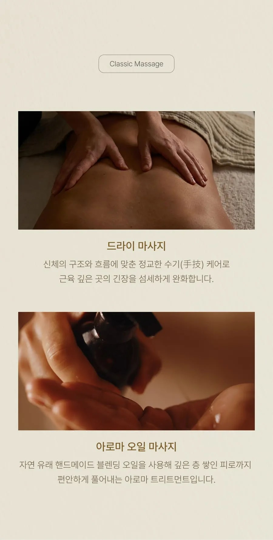 = 코리스파의 **[클래식 마사지]**가 준비되어 있습니다.