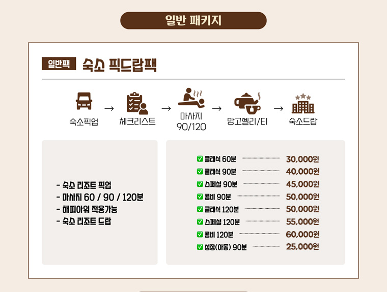 - 공항픽업샌딩 및 수면 (입출국 패키지 이용 바랍니다.)